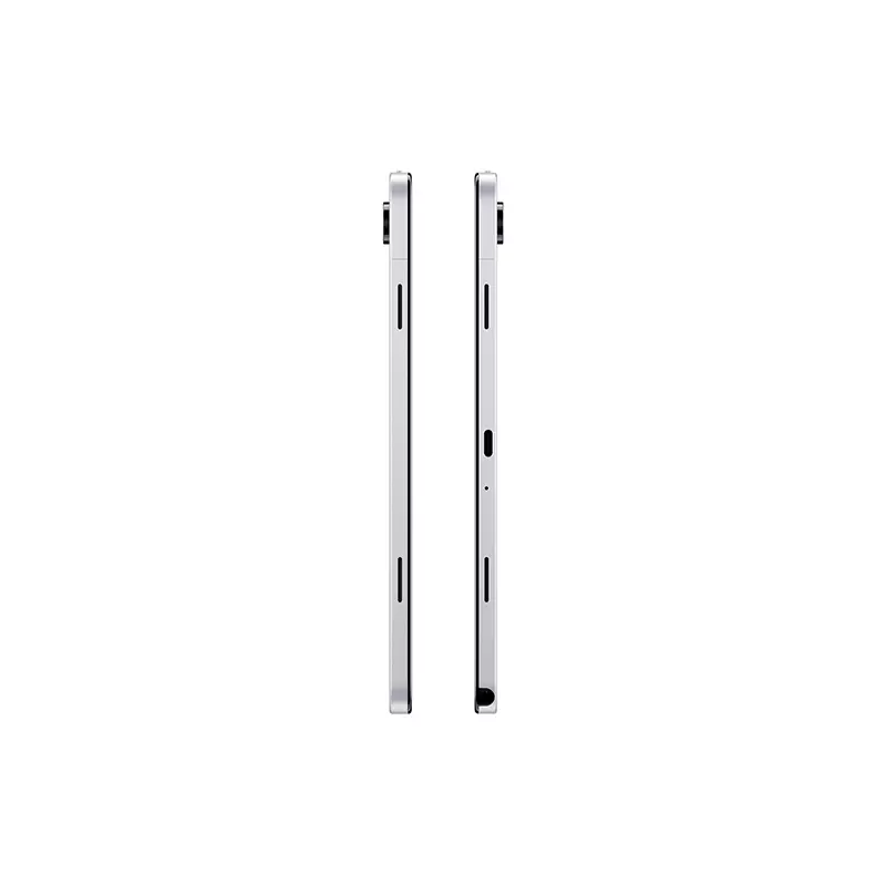 پنل جلویی دستگاه با شیشه پوشانده شده که حس کیفیت و یکپارچگی را منتقل می‌کند. این تبلت در دو رنگ خاکستری و نقره‌ای عرضه شده که هر دو رنگ، ظاهر رسمی و حرفه‌ای دارند و برای محیط‌های کاری و آموزشی بسیار مناسب هستند. طراحی کلی بدنه به‌گونه‌ای است که هم برای استفاده افقی و هم عمودی تعادل مناسبی دارد.