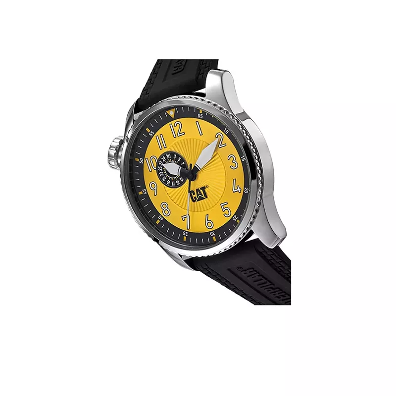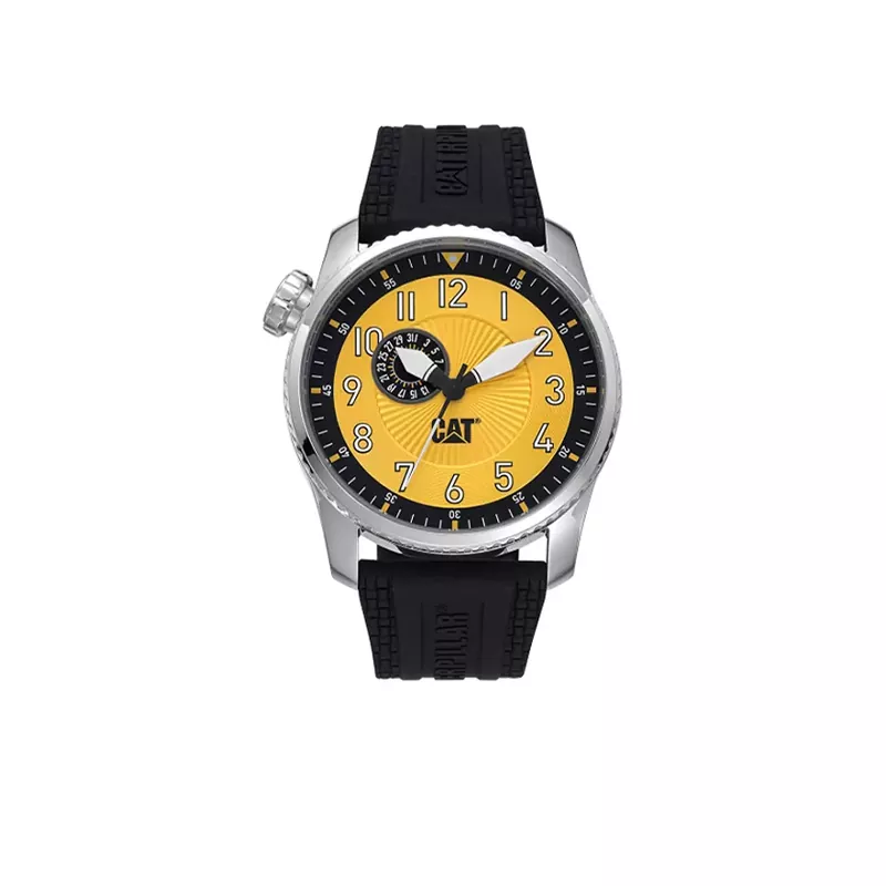 یکی از مهمترین نقاط قوت ساعت آنالوگ CATERPILLAR AQ.141.21.711، طراحی منحصربهفرد و مدرن آن است. این ساعت با ترکیب رنگهای نقرهای، زرد و مشکی جلوهای جسورانه و صنعتی دارد که بهخوبی امضای بصری برند کاترپیلار را منعکس میکند. صفحه ساعت بهصورت سهبعدی طراحی شده که عمق بصری خاصی ایجاد کرده و خوانایی زمان را افزایش میدهد.