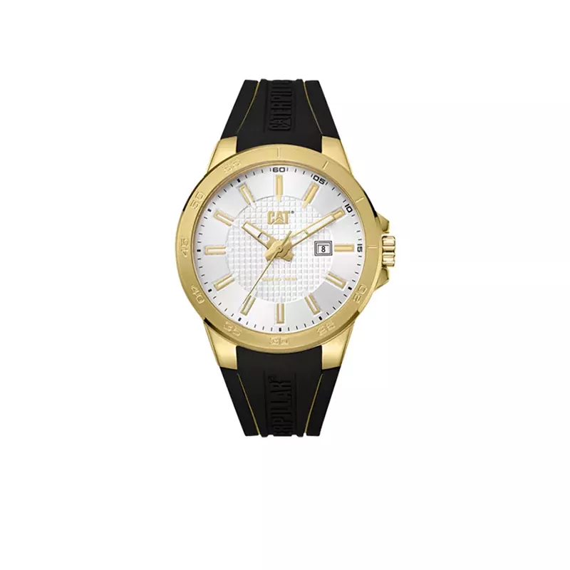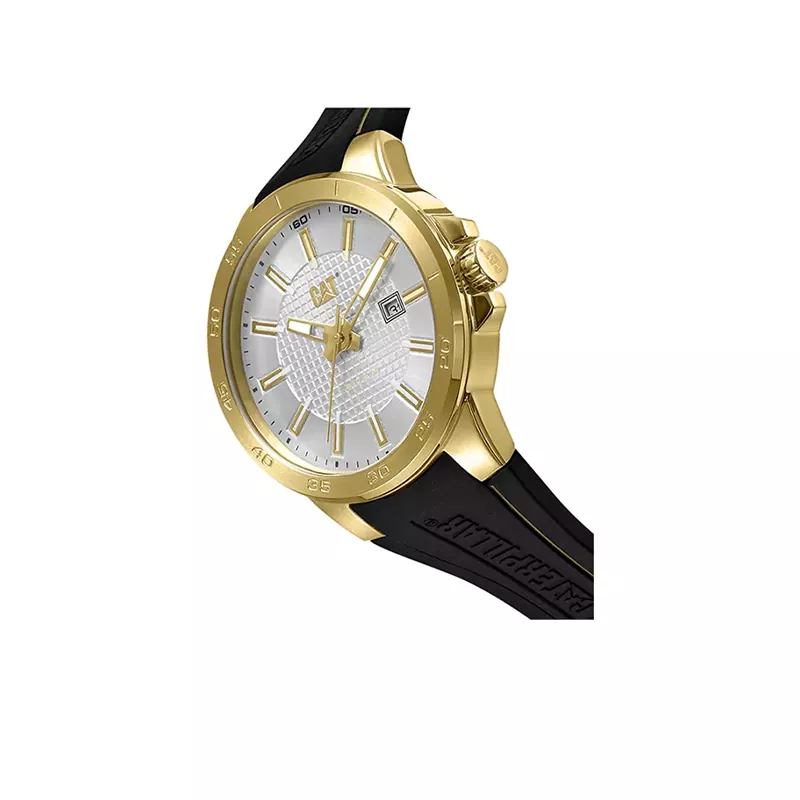 بدنه ساعت آنالوگ کاترپیلار مدل CC.131.21.213 از استیل ضد زنگ ساخته شده که استحکام و دوام بالایی را در استفاده طولانیمدت تضمین میکند. قاب ساعت با رنگ طلایی جلوهای خاص و متفاوت ایجاد کرده و در کنار طراحی صنعتی برند کاترپیلار، ظاهری جسورانه و مدرن به ساعت بخشیده است.