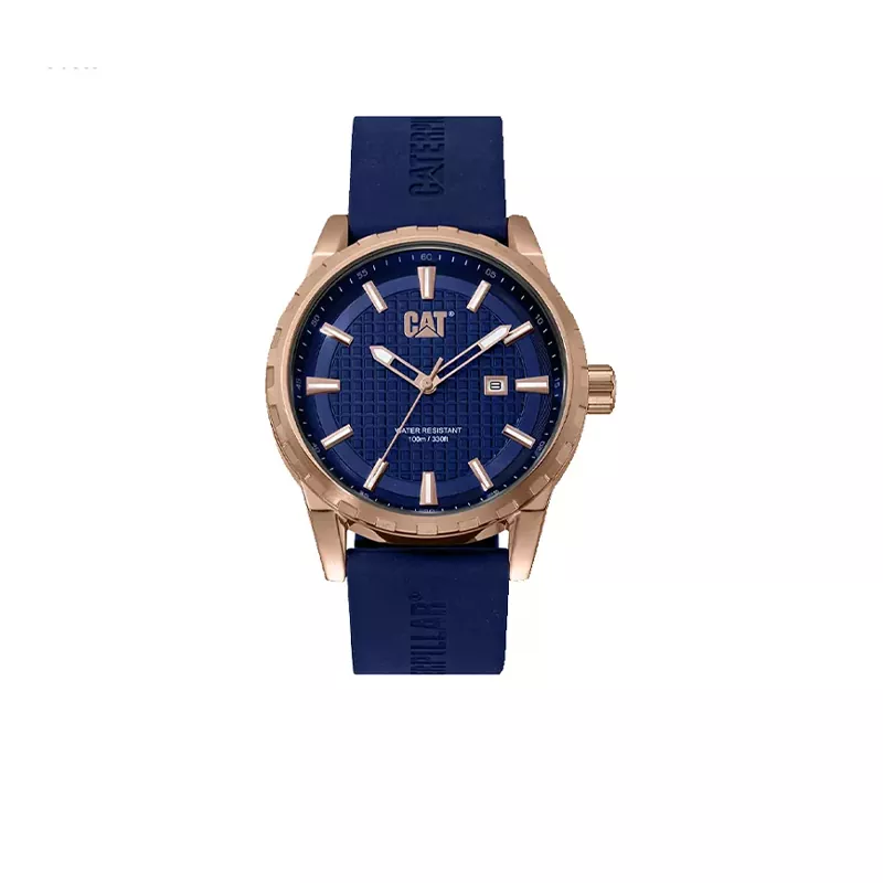 قاب رزگلد در کنار صفحه آبی-رزگلد، حس لوکستری به ساعت داده و در عین حال هویت صنعتی برند کاترپیلار را حفظ کرده است. این ترکیب رنگی باعث شده ساعت هم برای استایلهای اسپرت و هم برای استایلهای روزمره نیمهرسمی گزینهای جذاب باشد.