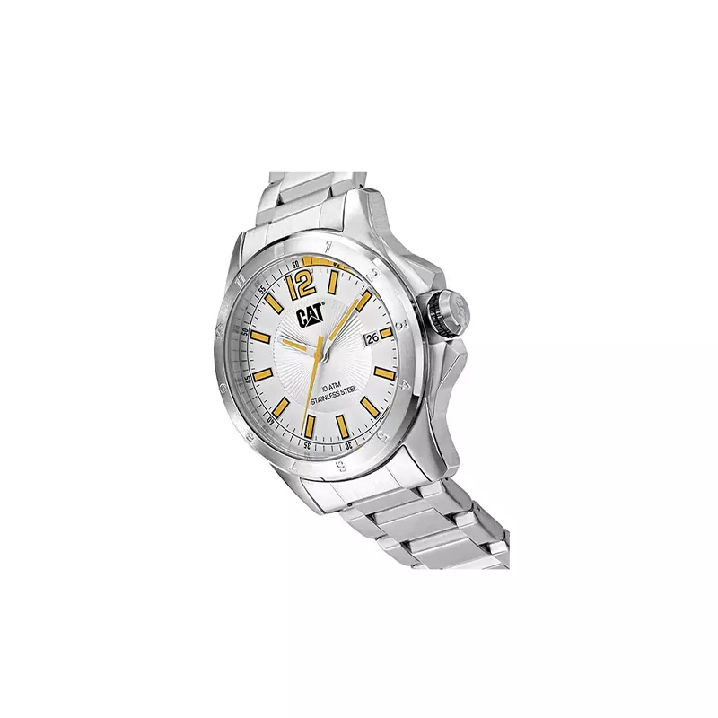 ساعت کاترپیلار مدل YW.141.11.237 دارای طراحی اسپرت و کاربردی است که آن را برای استفاده روزمره و محیطهای کاری کاملاً مناسب میسازد. رنگهای بهکاررفته شامل سفید، نقرهای و زرد هستند که در کنار هم، ظاهری صنعتی، مردانه و متمایز ایجاد کردهاند.