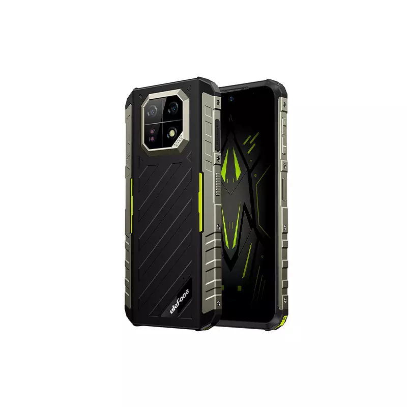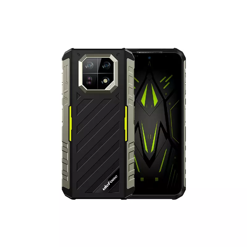 ابعاد Armor 22 برابر 176.8 در 84.9 در 15 میلیمتر است و وزن آن 324 گرم میباشد — سنگین، مستحکم و کاملاً آمادهی شرایط سخت. بدنه از مواد پلاستیکی فشرده با چارچوب فلزی و گوشههای ضخیم ساخته شده تا از ضربات، سقوط و فشارهای محیطی جان سالم به در ببرد. رنگهای مشکی و مشکی با سبز حالتی تاکتیکی دارند و حس ابزار نظامی را منتقل میکنند. طراحی خطوط زاویهدار در پشت دستگاه و لوگوی برجستهی Ulefone، ظاهری خشن و کاربردی به گوشی داده و هویت آن را متمایز میکند.